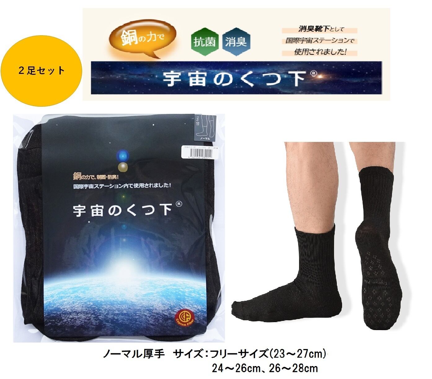 宇宙のくつ下 厚手 2足セット 高機能消臭靴下