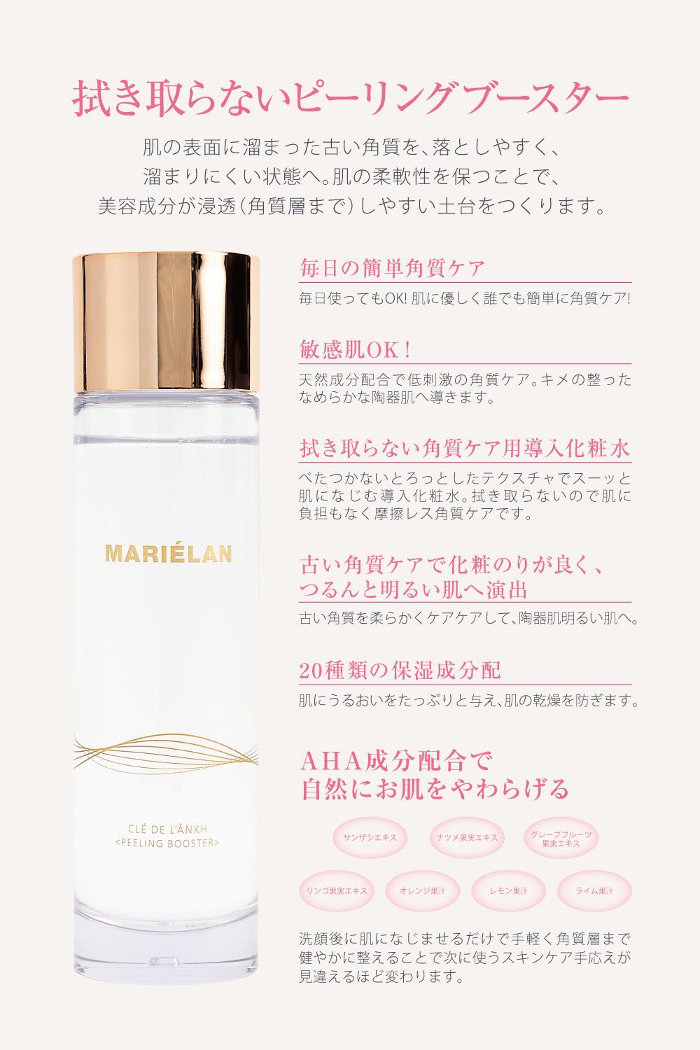 (3)AHA成分配合でこすらず自然にお肌をやわらげます。肌の表面に溜まった古い角質を、落としやすく、溜まりにくい状態へ。また、肌の柔軟性を保つことで、美容成分が浸透(角質層まで)しやすい土台をつくります。凸凹のないツヤのある肌へ。
