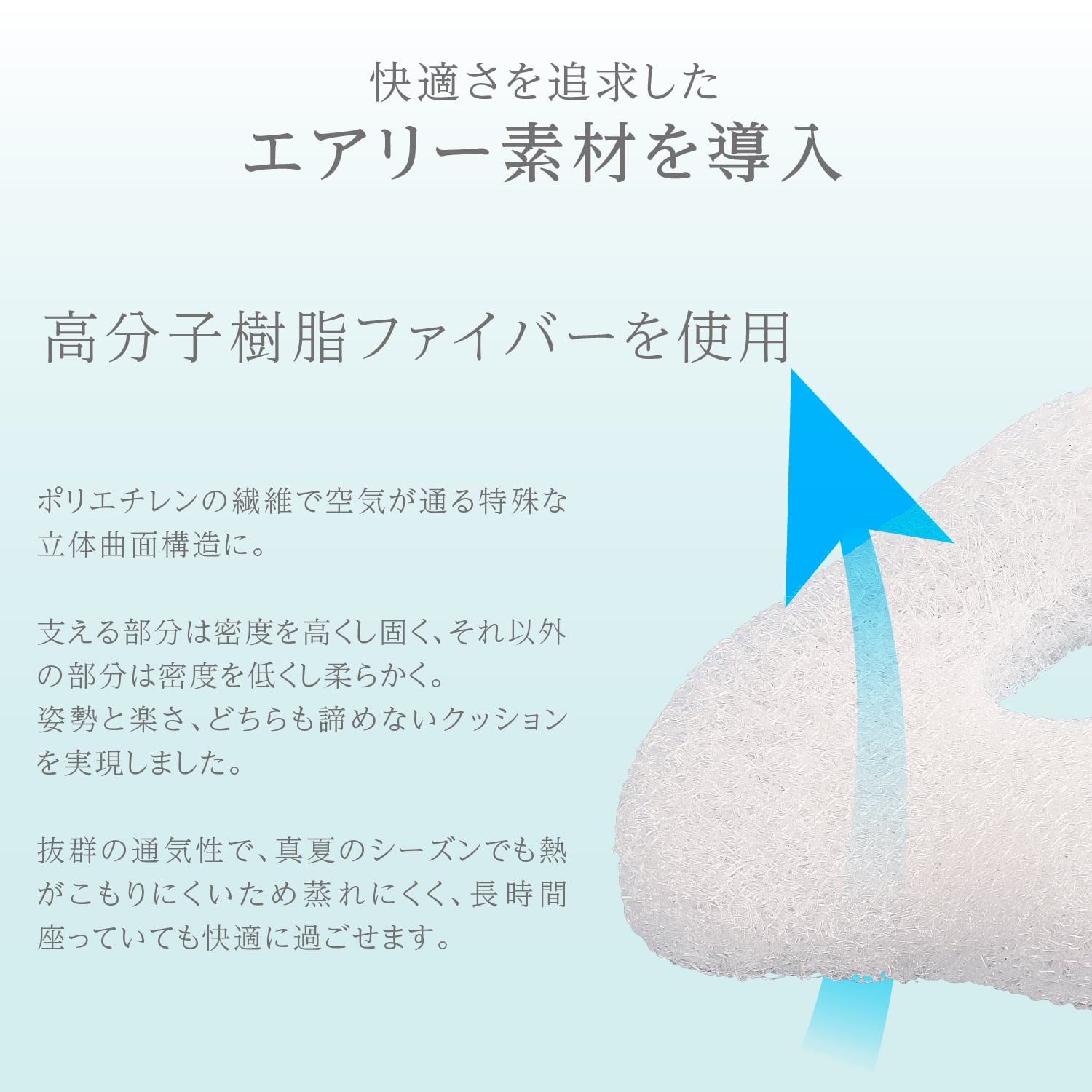 通気性の良いエアー素材を採用し、軽量・ムレにくい快適な座り心地を実現。