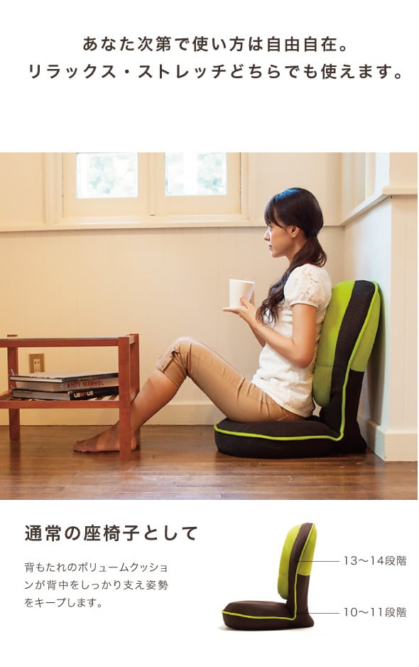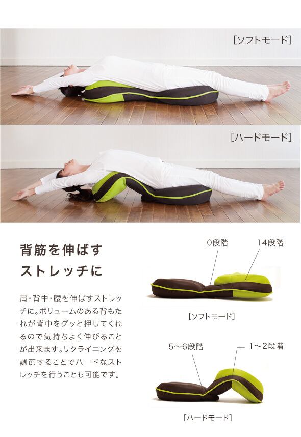 背もたれのリクライニングはもちろん、背中クッションもなんと90度に曲がることで、本商品は2通りの使い方ができます。
